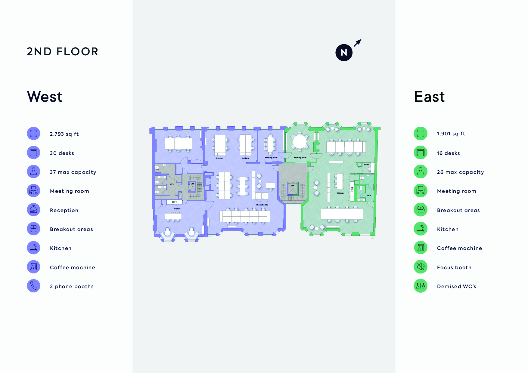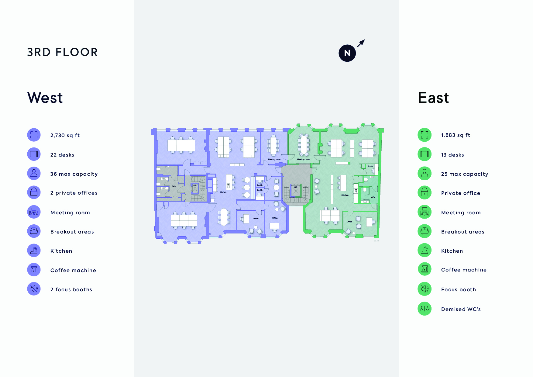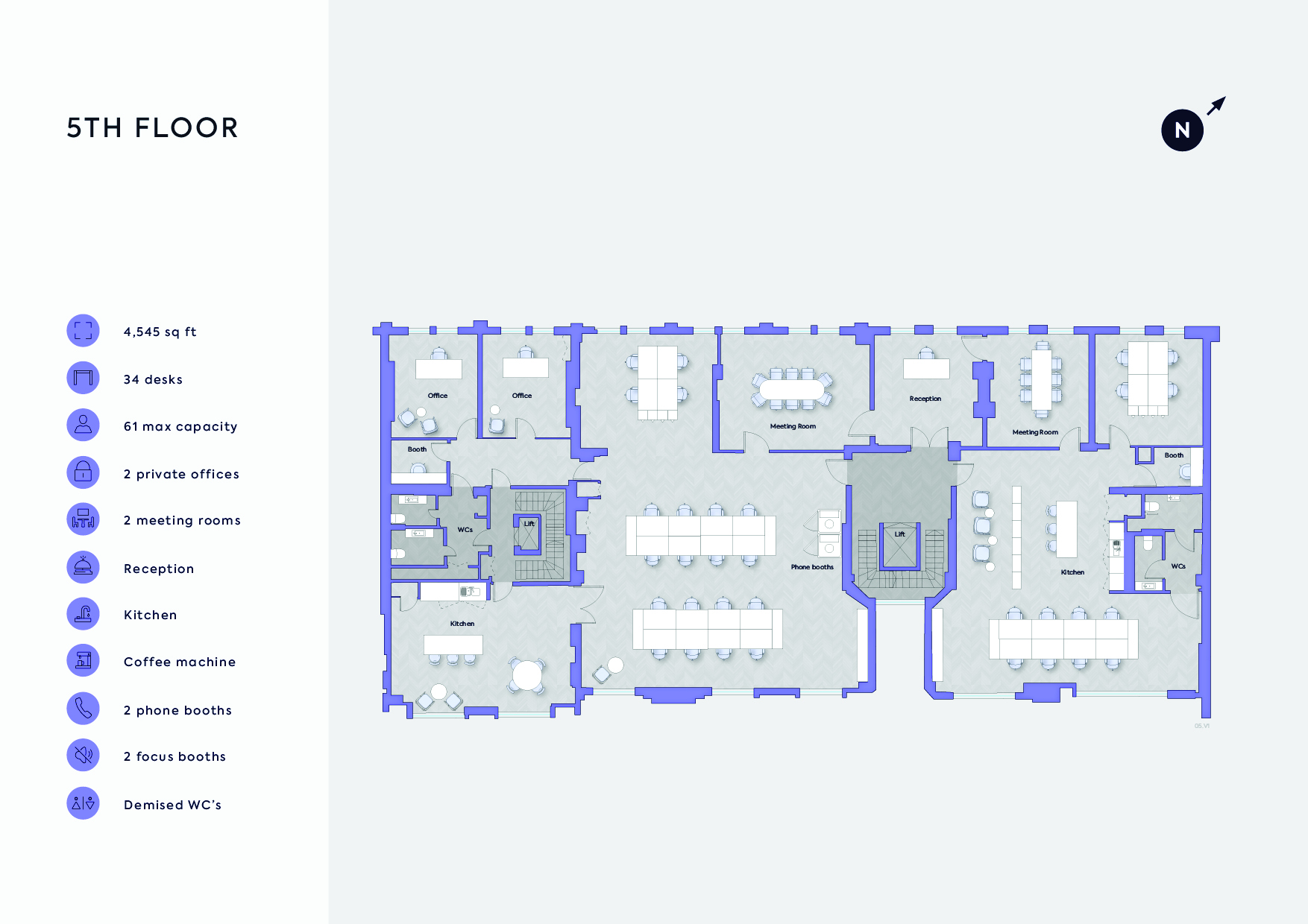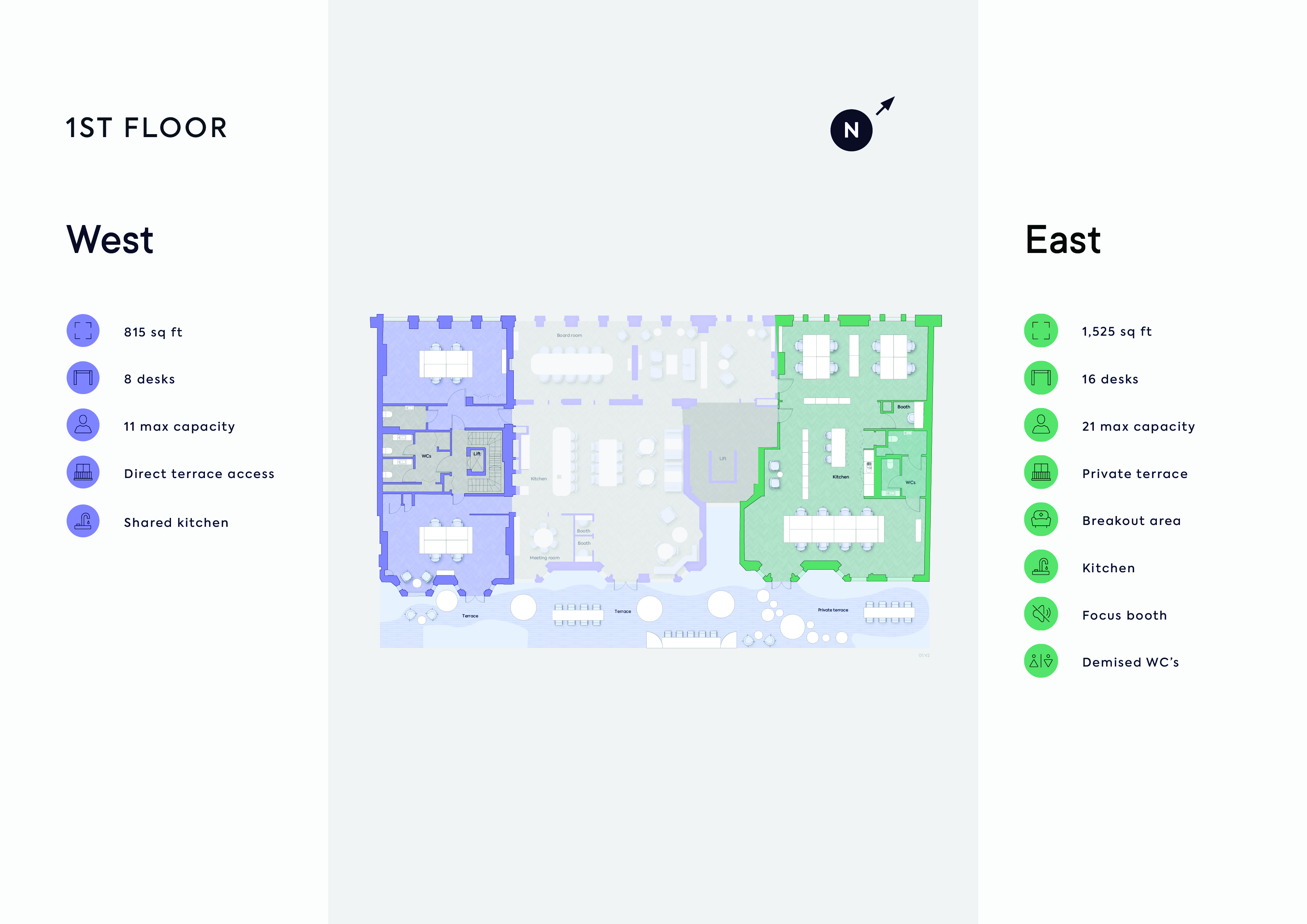 Prestigious location, Bright, flexible offices, Spacious communal lounge & event space, Landscaped terrace, Exclusive on-floor amenities, Private meeting rooms, Customer experience team, Cycle storage & lockers, Showers & vanity room